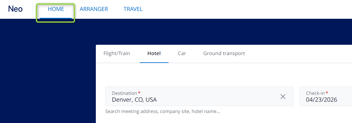 Once the Neo secondary tab opens, click Home on the top menu.